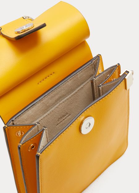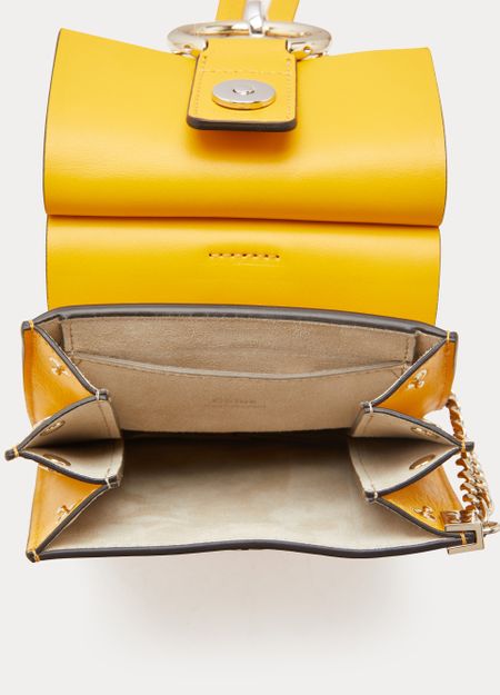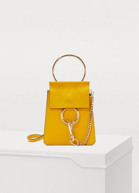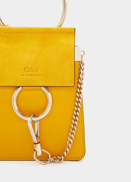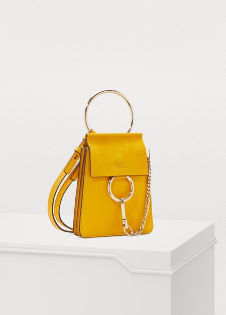 The Faye mini bag makes its entrance into the Chloé family. This piece takes up the style of its iconic predecessors with smooth and suede leather displayed on its flap and the fashion house's signature closure embellished with an oversized ring and suspended chain. This refined accessory can be carried by hand, over the shoulder, or across the body with its elegant metal bracelet handle...