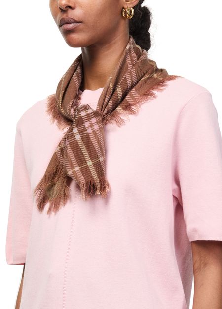 Reveal Bompard's mini tartan square scarf, a statement accessory featuring a checked pattern and refined fringed edges. This piece effortlessly elevates any ensemble with its modern design, offering a versatile touch that transitions seamlessly from day to night.