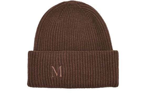 Reveal Max Mara's MM Retina beanie, a modern beanie featuring a round crown and visible stitching. The embroidered logo at the front adds a refined touch, making this piece a versatile accessory that seamlessly elevates both casual and sophisticated ensembles.