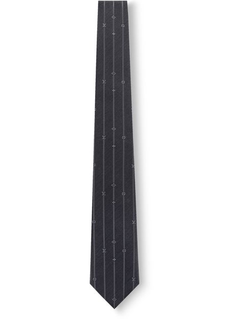 The Monogram Stripes Tie looks elegant this season with its pattern of double pinstripes punctuated by tonal Monogram motifs. Its pure silk construction and impeccable detailing make this signature accessory a stylish addition to a masculine wardrobe. Offered in understated colors, the tie will complement any smart or professional silhouette.