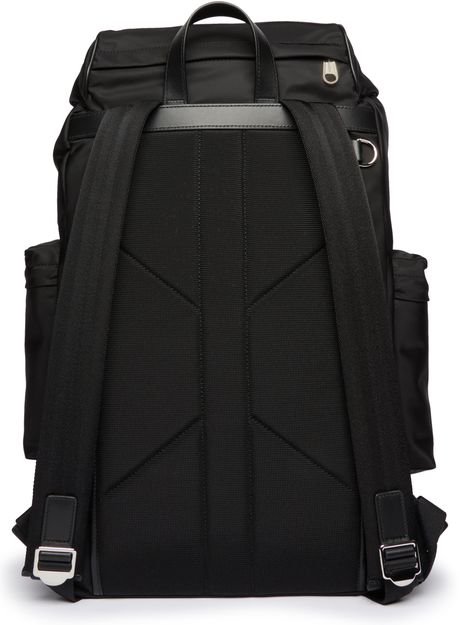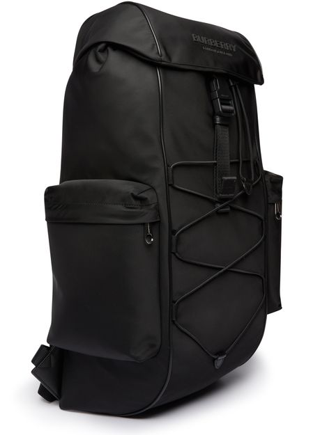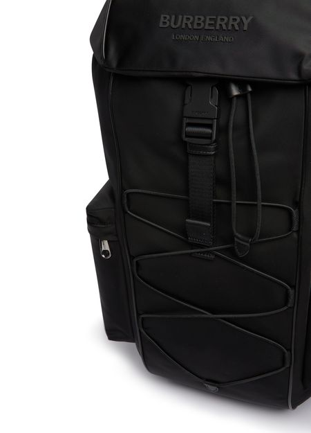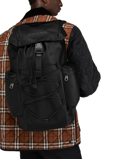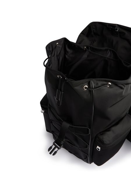 • Description : adjustable strap, wide strap, flap closure, drawstring closure, external pockets, carried on the back, front logo.