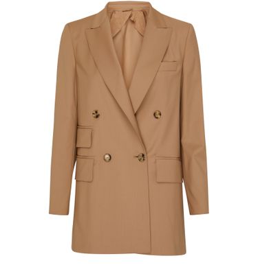 Max Mara's Nebbie double-breasted jacket is a sophisticated and timeless piece. This long-sleeved jacket features a front logo detail and is designed with a long silhouette. It has a double-breasted closure with 2 buttons, a breast pocket, and two front flap pockets for added functionality and style.
