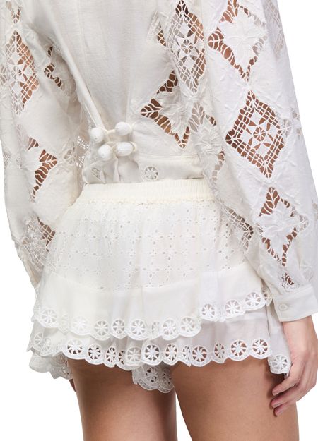 Reveal Isabel Marant's embroidered mini skirt, featuring intricate all-over embroidery and playful ruffle details. The elasticated waist ensures a comfortable fit, while the mini length adds a modern edge. Effortlessly transition from day to night with this versatile piece that elevates any wardrobe.