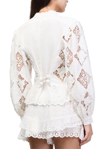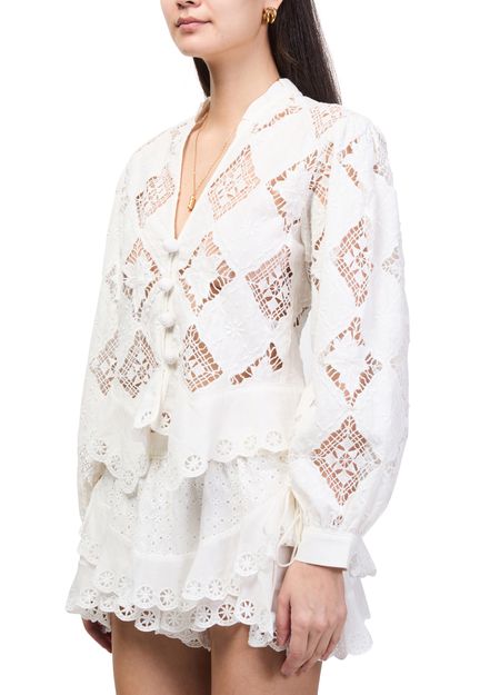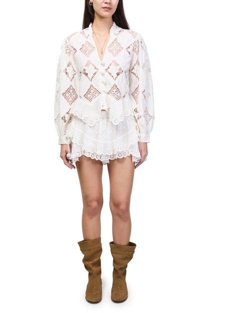 Reveal Isabel Marant's Nina long-sleeve blouse, featuring a refined V-neck and elegant diamond pattern. The front buttoned closure and long sleeves create a sophisticated silhouette, making this top a versatile choice for both professional and casual ensembles.