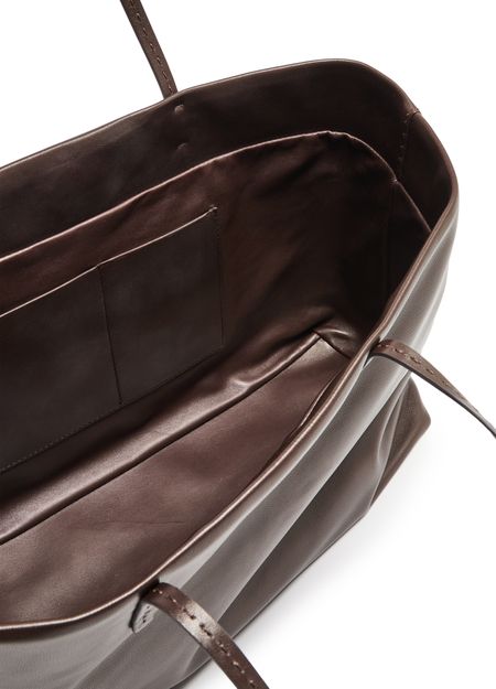 Reveal The Row's Nuance tote bag, crafted from smooth leather with double handles for effortless carrying. The spacious interior compartment and interior patch pockets offer practical organization, while visible topstitching highlights refined craftsmanship. This tote blends modern sophistication with everyday versatility.