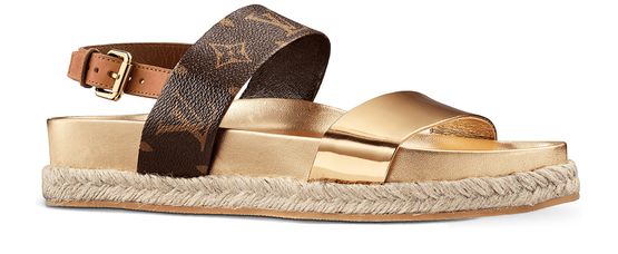A chic yet relaxed style for summer, this comfort sandal combines Monogram canvas and metallic calf leather with a distinctive espadrille sole.
