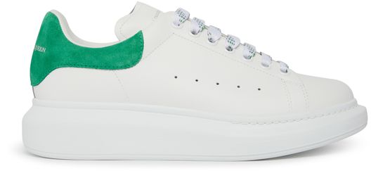 Alexander McQueen's oversize sneakers feature a round toe and thick outer sole for added comfort. The shoes are closed and showcase the brand's logo on the tongue and at the back in silver letters, as well as contrast details for a stylish touch. These sneakers are a perfect blend of fashion and function.