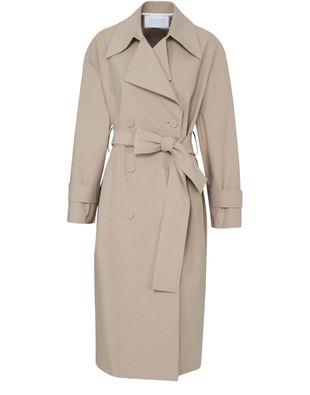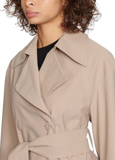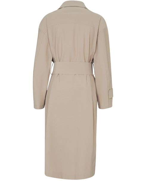 This oversized trench coat with visible seams, designed by Harris Wharf London, has large armholes and offers unparalleled comfort. A wide belt emphasises the waist.