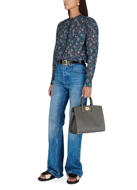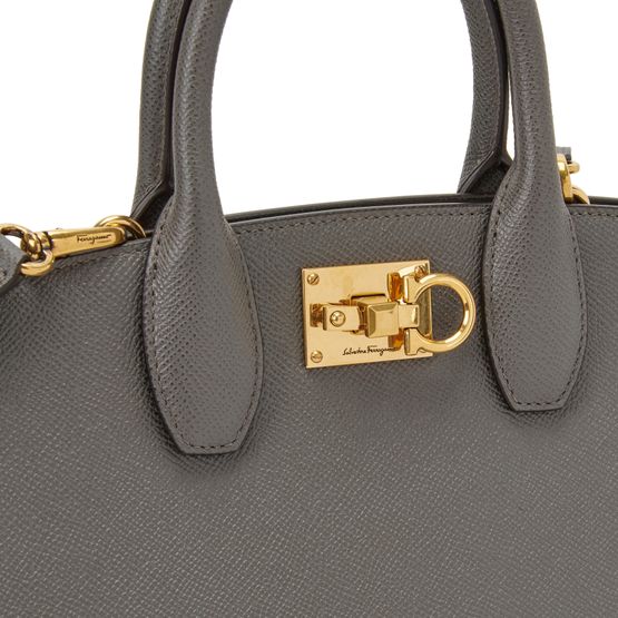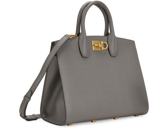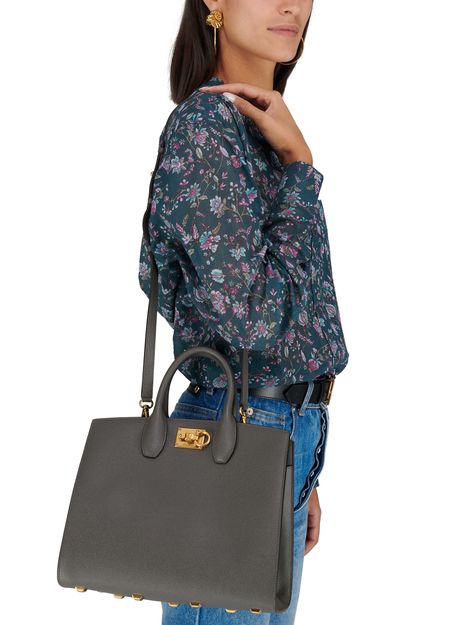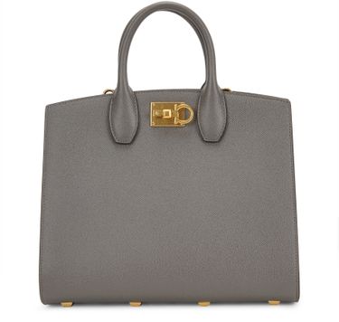 The Studio bag by Salvatore Ferragamo is a very refined accessory with a clean design. Its smooth leather is embellished with gold metal finishes and a logo clasp.