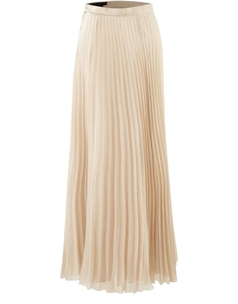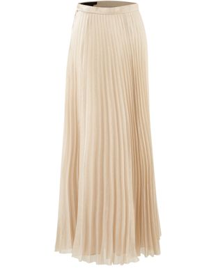 The long pleated Pacato dress by Max Mara is a classic, sophisticated piece. Its flowing drape elegantly enhances the female figure.