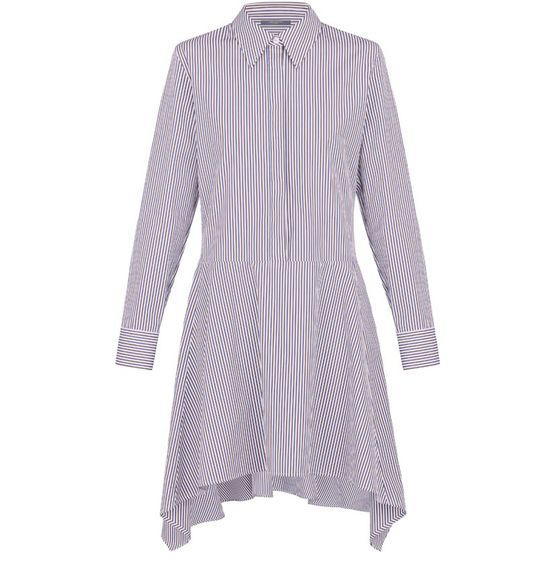 This panel dress is a summer wardrobe staple. Crafted in soft striped cotton poplin, this button-up shirt-style piece features a low waist and side panels on its feminine flared skirt. A Monogram flower tab provides a discreet Louis Vuitton signature.