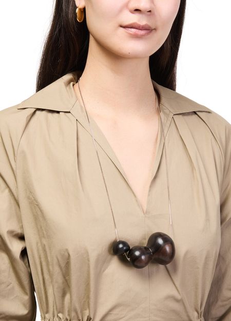 Reveal Max Mara's long necklace with an ebony pendant, a refined accessory that brings a modern edge to any ensemble. The sleek design and subtle pendant make it a versatile piece, perfect for elevating both day and evening looks with understated sophistication.