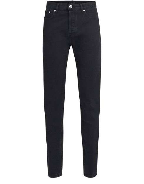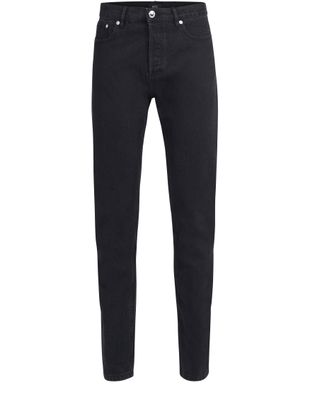 • Description : Straight-cut jeans, visible stitching, two front pockets, belt loops.