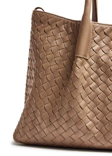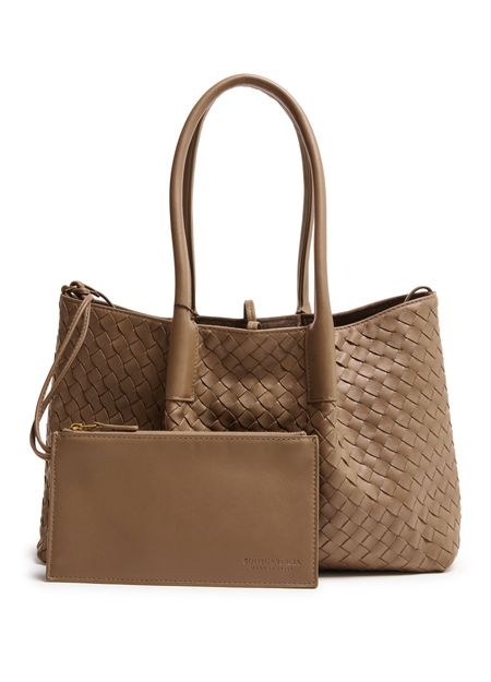 Reveal Bottega Veneta's Pinacoteca reversible tote bag, showcasing the iconic Intrecciato weaving technique. Double handles offer effortless carrying, while a detachable interior purse and spacious compartment ensure both style and practicality. This piece redefines modern sophistication for everyday essentials.