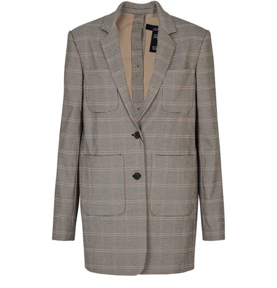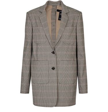 This pocket blazer is signed Rokh. This piece combines a long cut with a houndstooth pattern, a lapel collar and four outside pockets.