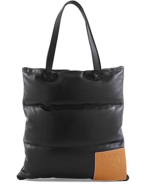 Loewe's Puffy vertical tote is an original and masculine design. The shape and elegant styling make it a virtuoso piece. This designer bag will up your style. Pair this piece by Loewe with a slim fit turtle neck jumper, straight cut jeans or trousers and a pair of leather boots.