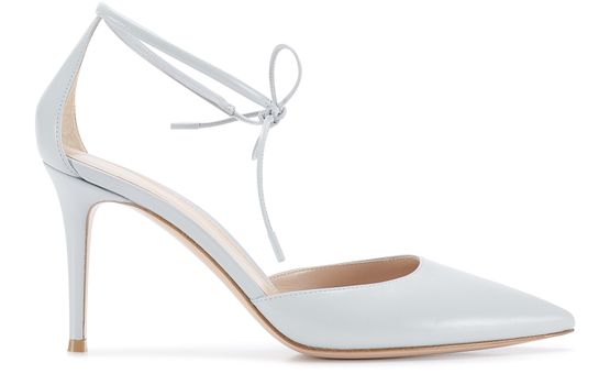 With an ultra-feminine shape, the stiletto heel pumps with a pointed toe by Italian designer Gianvito Rossi tie around your ankle.