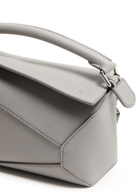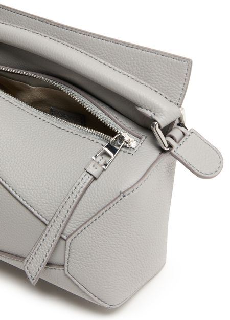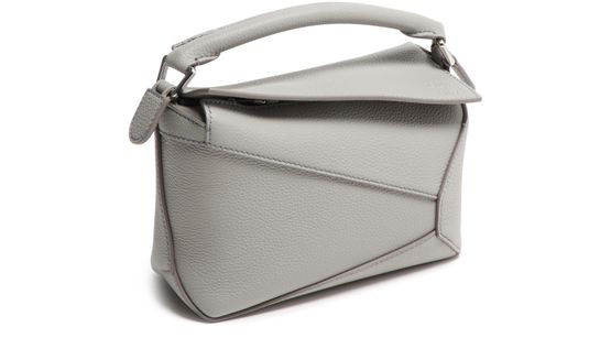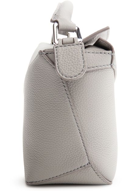The Loewe Puzzle Edge mini bag is crafted from grained leather, featuring a sleek and compact design. It is equipped with a convenient handle and a detachable strap, allowing it to be worn either in the hand or on the shoulder. A stylish accessory for any occasion.