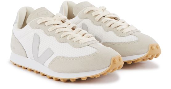 Veja specialises mainly in the creation of eco-friendly shoes such as their Rio-Branco trainers. This streetwear model can be identified by its contrasting inserts and the brand's signature V-shaped detail.