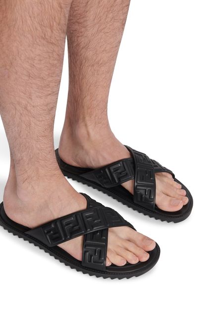 These FF Nappa sandals, designed by Fendi, reflect a refined look. With a minimalist line and in a versatile shade, these leather sandals complete your summer outfit.