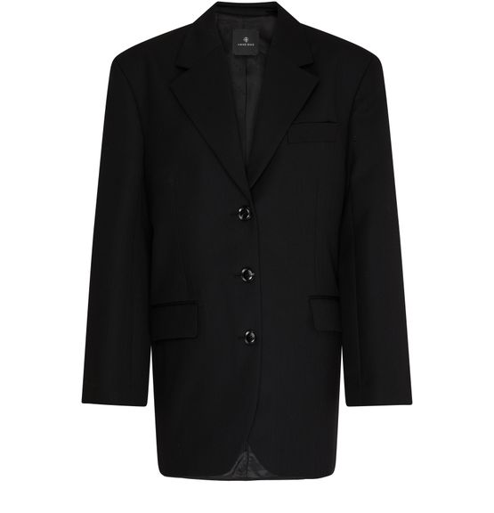 Anine Bing's Sara Blazer is a sophisticated single-breasted piece, featuring a classic notched collar and three-button closure. Its long sleeves and lined interior provide a tailored fit, while flap and welt pockets add practicality. Two front pockets and a breast pocket complete this timeless blazer, perfect for any occasion.