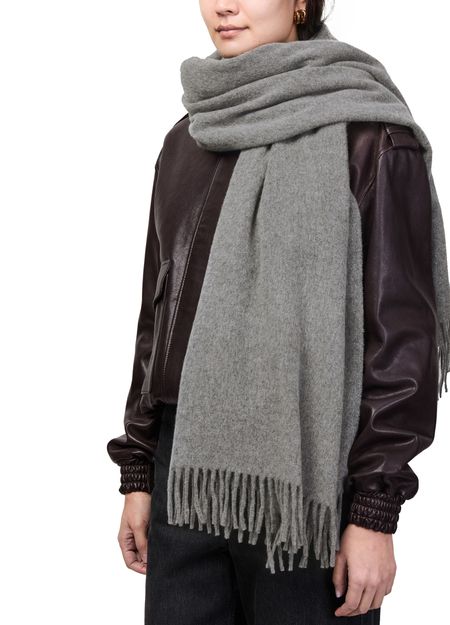 Acne's Oversized scarf showcases a unique design with fringe details that add a playful touch. Its appliquéd logo subtly enhances the style, while the fringed edges create a relaxed, bohemian vibe. Perfect for layering, this scarf effortlessly elevates any outfit, making it a must-have accessory for fashion enthusiasts.
