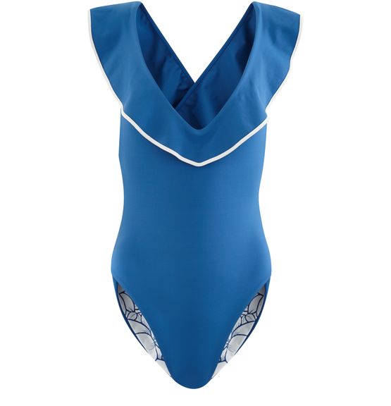 The Sedona swimming costume features the feminine details beloved of designer Marysia. The plunging neckline highlights the chest, while crossover ruffles subtly reveal the back.