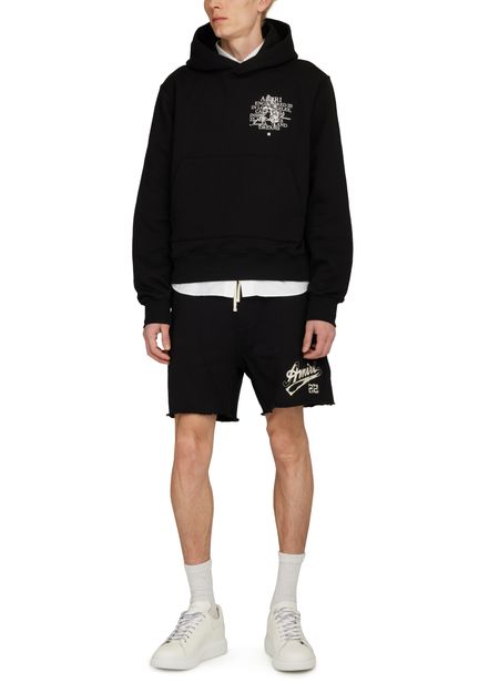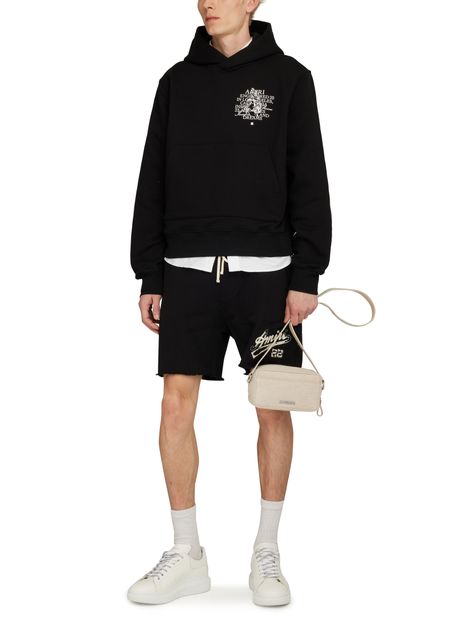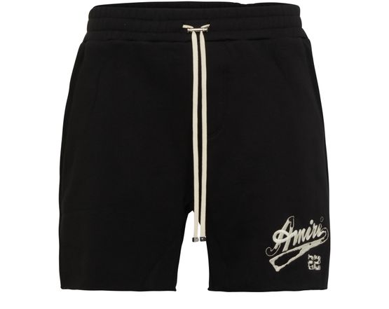 Amiri's Short is a versatile choice for casual days. The mid-length shorts feature a slim fit and an elasticated drawstring waist for a comfortable and adjustable fit. With a turn-up hem and side pockets, these shorts are perfect for everyday wear. Finished with an embroidered logo, engraved logo, and metal finishes.