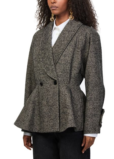 Reveal Chloe's short double-breasted coat, a refined piece with a classic collar and long sleeves. The tailored silhouette and precise closure offer timeless appeal, while its versatile design transitions seamlessly from day to evening. Subtle accents and a polished finish make this coat a standout addition.