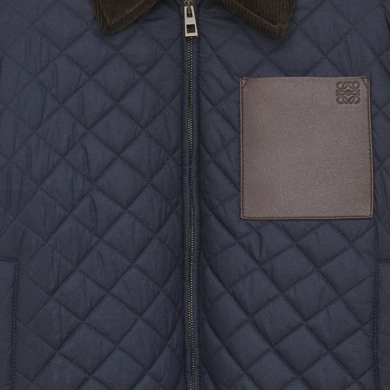 Reveal Loewe's cropped diamond pattern jacket, a modern take on casual style. The padded texture and topstitched edges create a striking silhouette, while the zipper closure and patch pockets add practical flair. Chest and engraved logos offer signature detail, making this piece perfect for versatile, everyday wear.