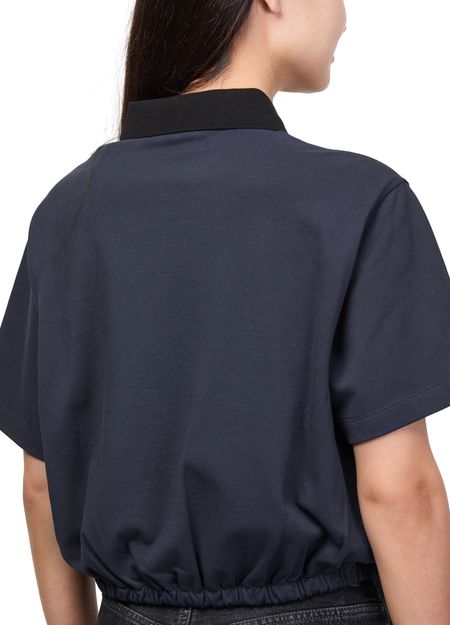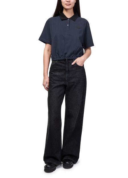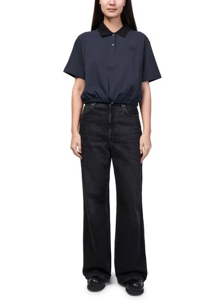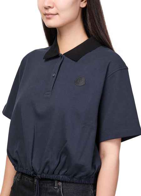 Reveal Moncler's short-sleeved top, featuring a refined chest logo and a silhouette gathered at the waist for a flattering fit. The soft fabric and modern cut make this piece ideal for versatile styling, whether paired with tailored pants or casual denim for a polished look.