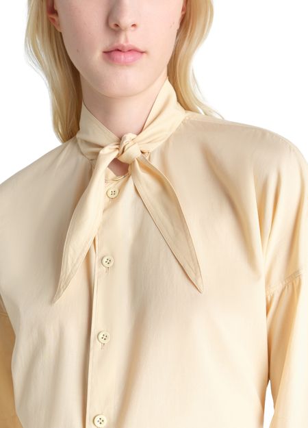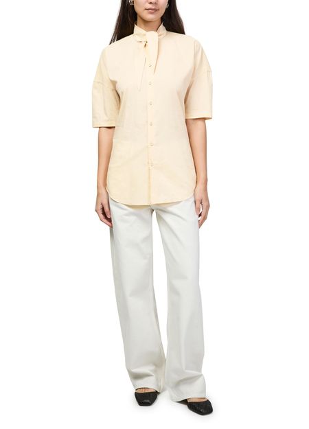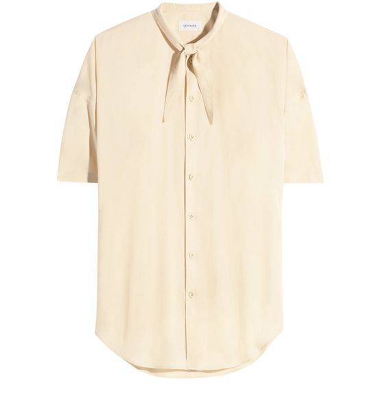 Reveal Lemaire's short-sleeved shirt with scarf, featuring a refined button fastening and a relaxed silhouette. The soft fabric and unique scarf detail add a sophisticated touch, making this top a versatile choice for both casual and elevated ensembles.