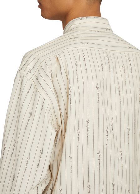 The Jacquemus Simon shirt is a long-sleeved shirt with a classic collar and buttoned fastening. It features an all-over logo design and has a straight cut with a loose fit. This shirt is perfect for those who want to add a touch of luxury to their wardrobe while maintaining a classic and comfortable style.