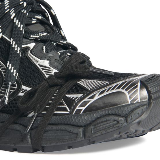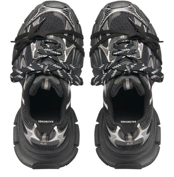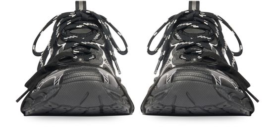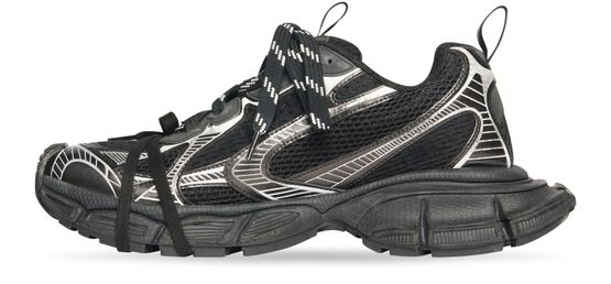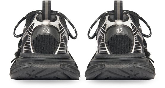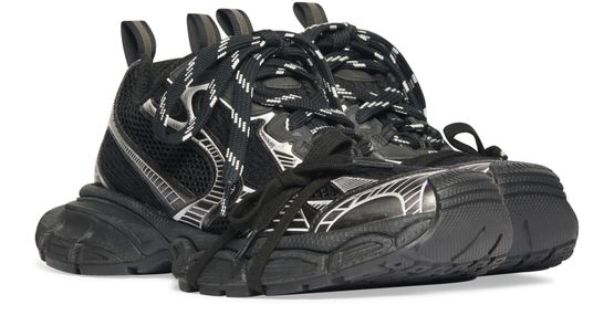 Balenciaga's Sneaker 3XL features a worn-out effect with Balenciaga's logo at the edge of the toe and back. It has embossed size on the upper and back of the heel, along with 3XL rubber branding on the tongue with reflective detail. The sneaker also includes a back pull-on tab and tongue pull-on tab with reflective detail.