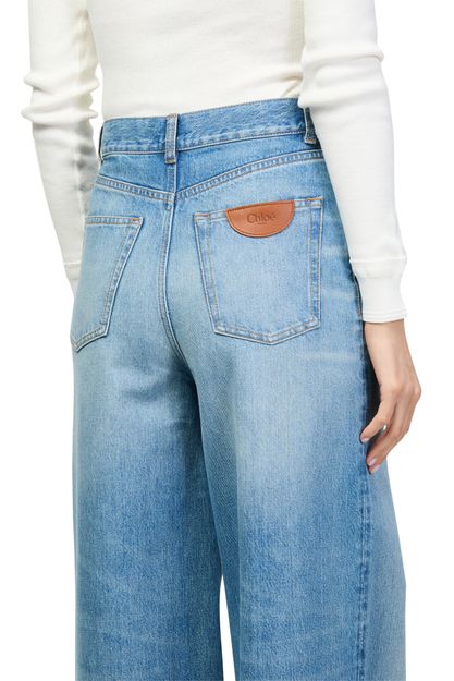 Reveal Chloe's straight-cut jeans, crafted from premium denim for a refined silhouette. The ankle-length design features a buttoned zipper closure, visible stitching, and both front and back pockets. A back leather logo patch and belt loops add subtle sophistication, making these jeans a versatile staple for any wardrobe.