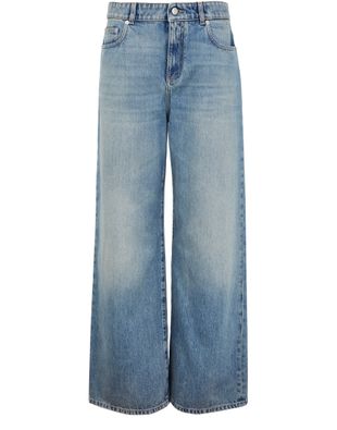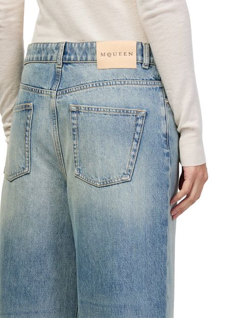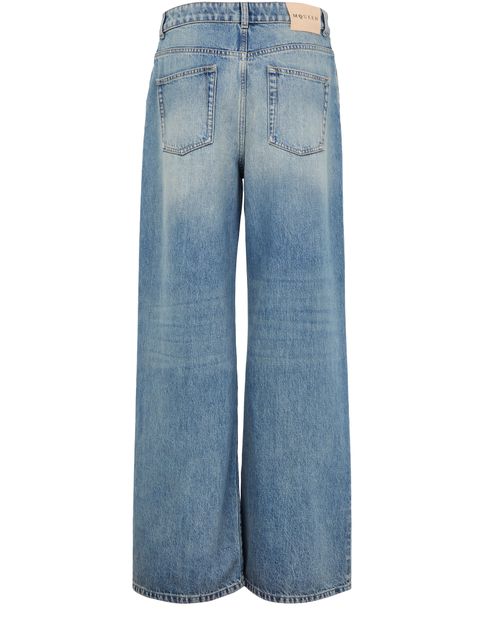 Reveal Alexander McQueen's straight-cut jeans, crafted from faded denim for a refined, contemporary look. The ankle-length silhouette features a buttoned zipper closure, visible stitching, and practical front and back pockets. A back leather logo and belt loops add signature detail, making these jeans a versatile addition to any wardrobe.