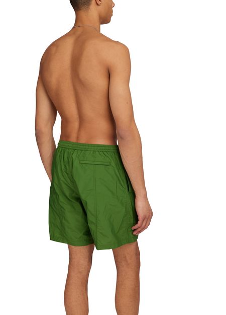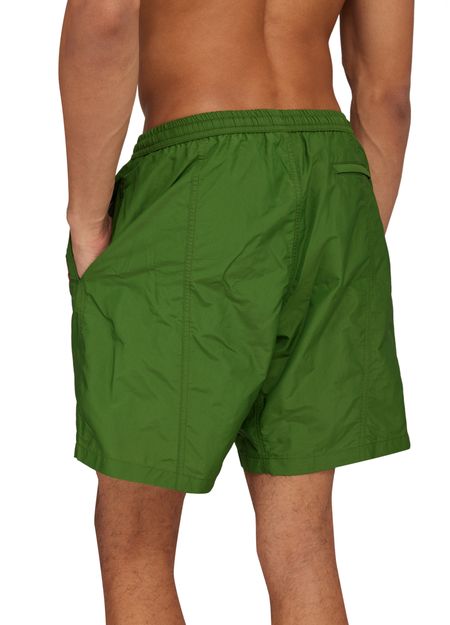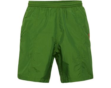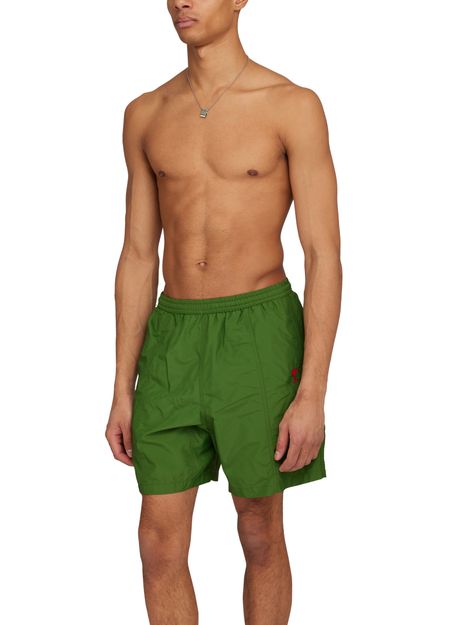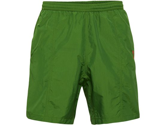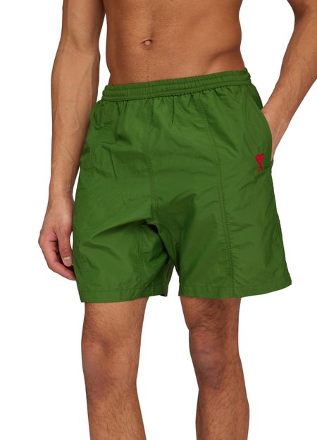 These Ami Swim shorts feature an elasticated waist for a comfortable fit. The iconic printed logo adds a touch of style, while the visible topstitching adds a subtle detail. Perfect for a day at the beach or pool, these swim shorts are a must-have for any summer wardrobe.