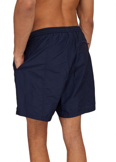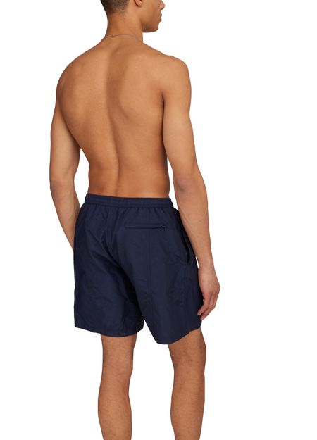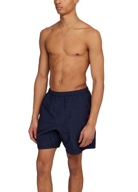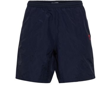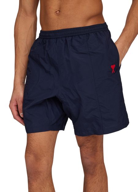 These Ami Swim shorts feature an elasticated waist for a comfortable fit. The iconic printed logo adds a touch of style, while the visible topstitching adds a subtle detail. Perfect for a day at the beach or pool, these swim shorts are a must-have for any summer wardrobe.