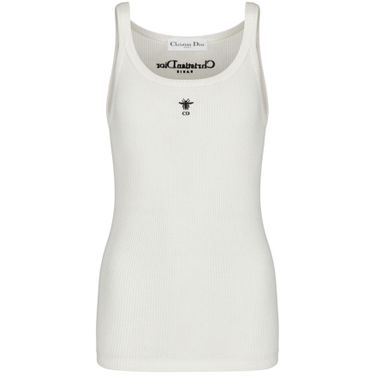 Unveil Dior's Tank Top featuring an embroidered bee emblem on the front and the Christian Dior Paris signature on the back. This piece effortlessly combines iconic branding with refined elegance, making it a must-have addition to your contemporary wardrobe.