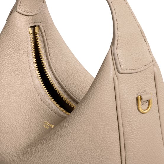 Reveal Celine's Teen Celine Lulu in grained calfskin, a versatile masterpiece. With hand, shoulder, and cross-body carry options, it features a zipped closure and one main compartment. The adjustable handle and strap offer a personalized fit with drops between 20 and 24 inches.