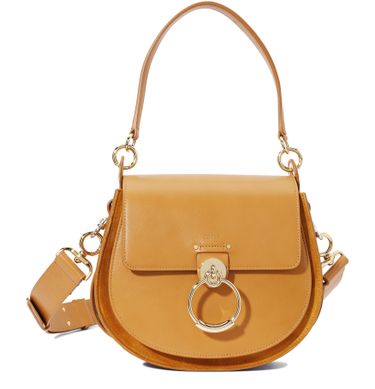 With this Tess leather shoulder bag, we recognize the sophisticated charm and bohemian inspiration that runs through Chloé's fashion. With its bright leather and elegant saddle shape, this accessory embodies the essence of femininity. The signature gold metal clasp shines and gives it an extra touch of elegance. This bag is easy to match with an androgynous look such as a pantsuit.
