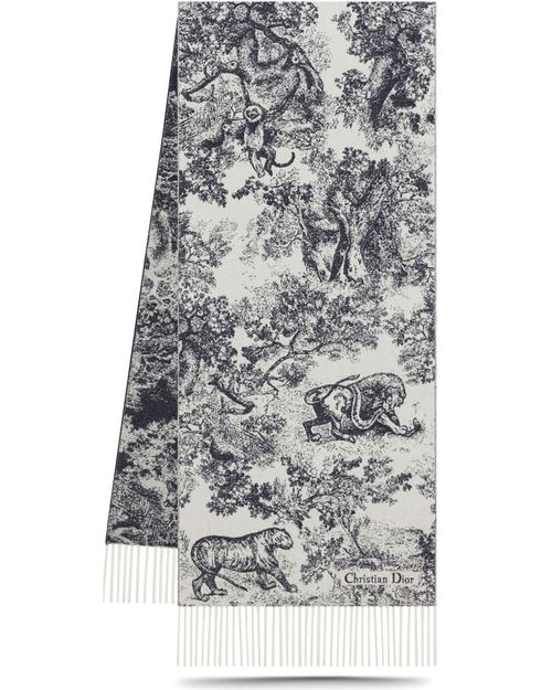 • Description : Toile de Jouy Sauvage pattern, christian Dior signature, fringed ends.