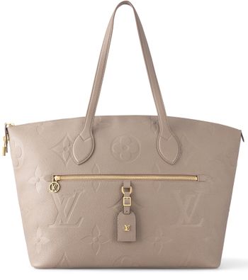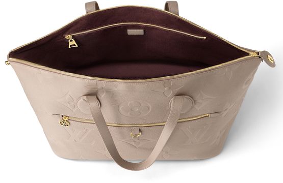 Fashioned from Monogram Empreinte leather with an oversized Monogram pattern embossed into the leather, the Travel Bag is a great for a weekend getaway. Handsome and roomy, this versatile bag is light and easy to carry, thanks to its two long leather handles. The LV Circle zip-pull and leather name tag sign the bag.
