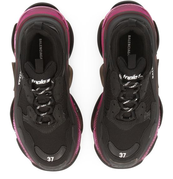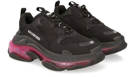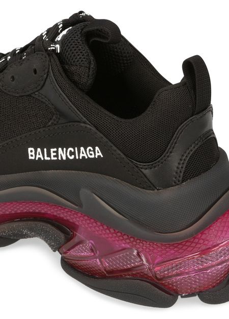 Powerful and stylish, Triple S Clear Sole sneakers feature a thick contrast sole supporting a sporty design with tone-on-tone stitching. Balenciaga has placed its signature on the side of the shoe.