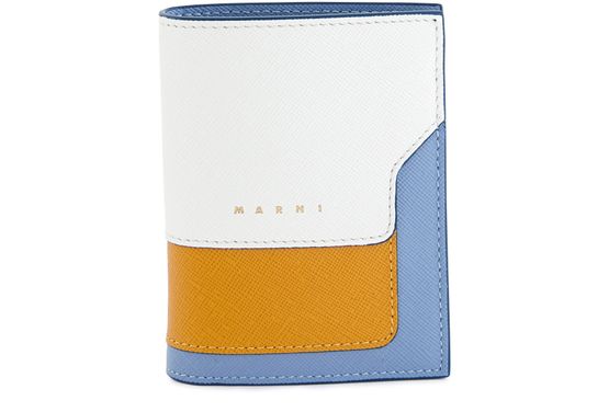 Portefeuille en cuir saffiano Portefeuille à deux volets tricolore à bouton-pression 1 compartiment à billets pour YEN et USD 4 fentes pour cartes 1 poche à monnaie Fabriqué en Italie