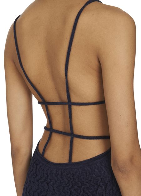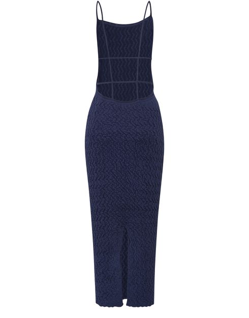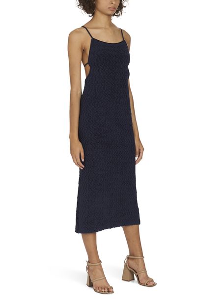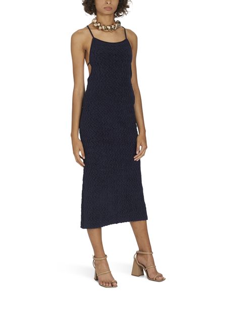 Thin straps support the powerfully feminine length of this elegant velvet knit dress with simple, sophisticated style, designed by Jacquemus.