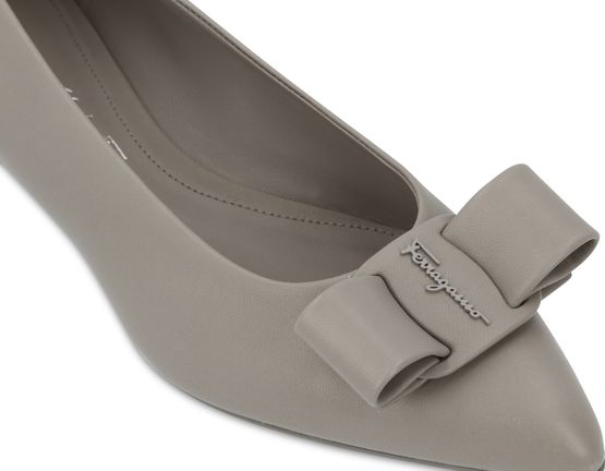 This Viva ballet flat is an elegant creation by Salvatore Ferragamo. A model with soft, rounded lines, enhanced by a sophisticated bow at the front.