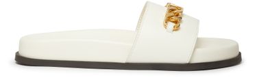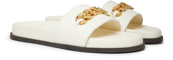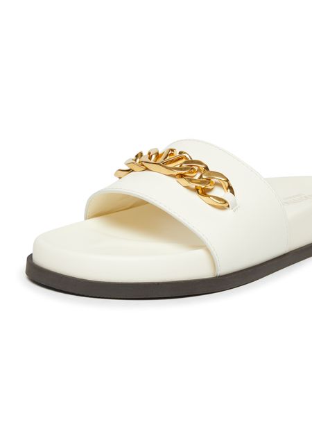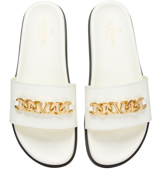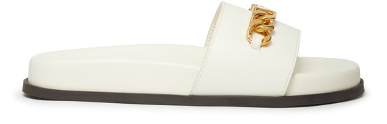 Vlogo Chain sandals exude a timeless elegance with smooth leather construction. Featuring an open round toe design, they offer comfort and style. The contrasting color sole adds a touch of playfulness to the design. Slip-on functionality ensures effortless wear and versatility.