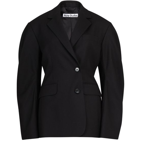 Acne Studios has created an unstructured outline for its balloon-sleeved jacket that women will love for its playful originality. The waist and hips are further emphasized.