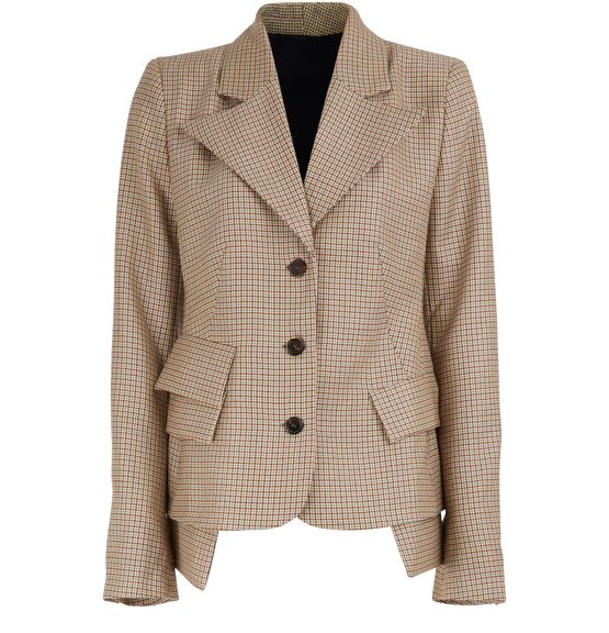 Lines and motifs define this plaid blazer from Aalto. Its slit cut is accentuated by the shoulder pads and drawn-in waist. The suit collar and the double flap pocket add a deconstructed touch. Wear this blazer over simple slim-fit jeans and a raised collar shirt.